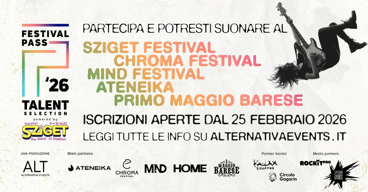 Da più di venti anni selezioniamo artisti italiani da convocare alla finale che permette al progetto vincitore di esibirsi in vari festival italiani e all'estero. Il Sziget Festival collabora alla produzione del Festival Pass fornendo un importante contributo alla realizzazione di questa talent selection.